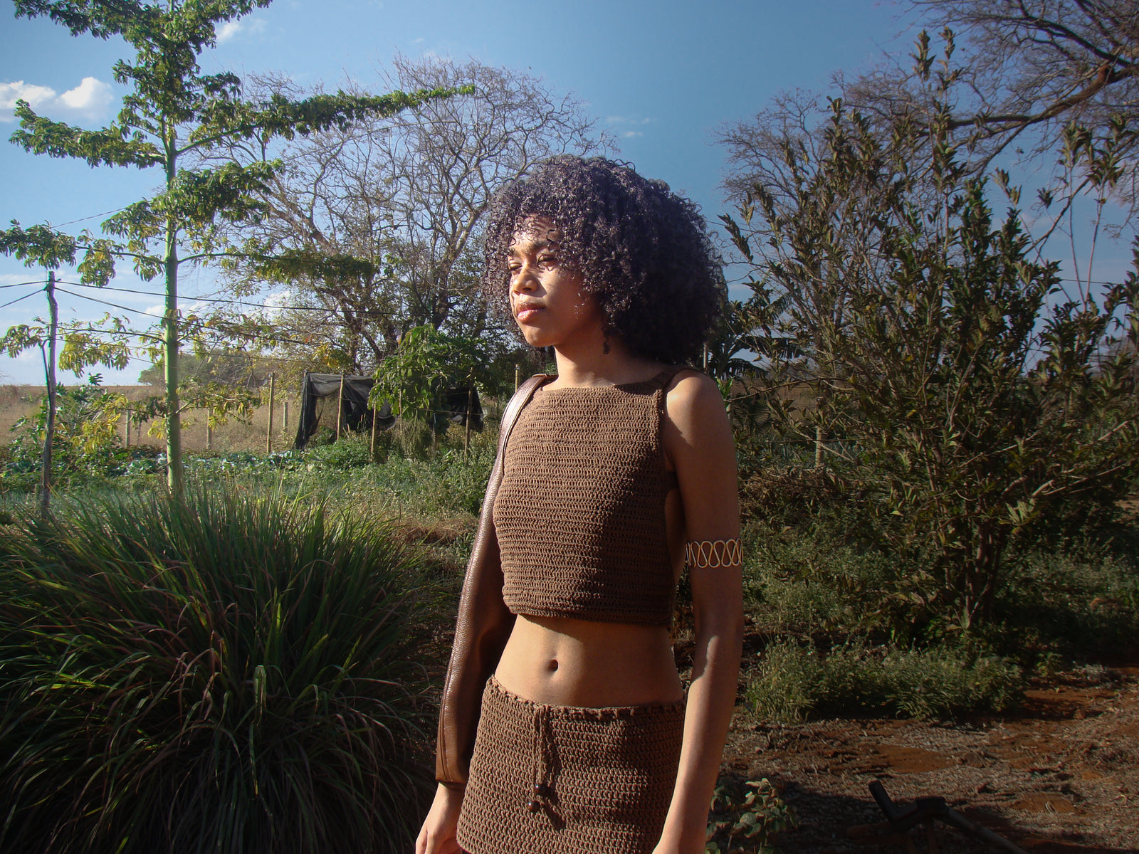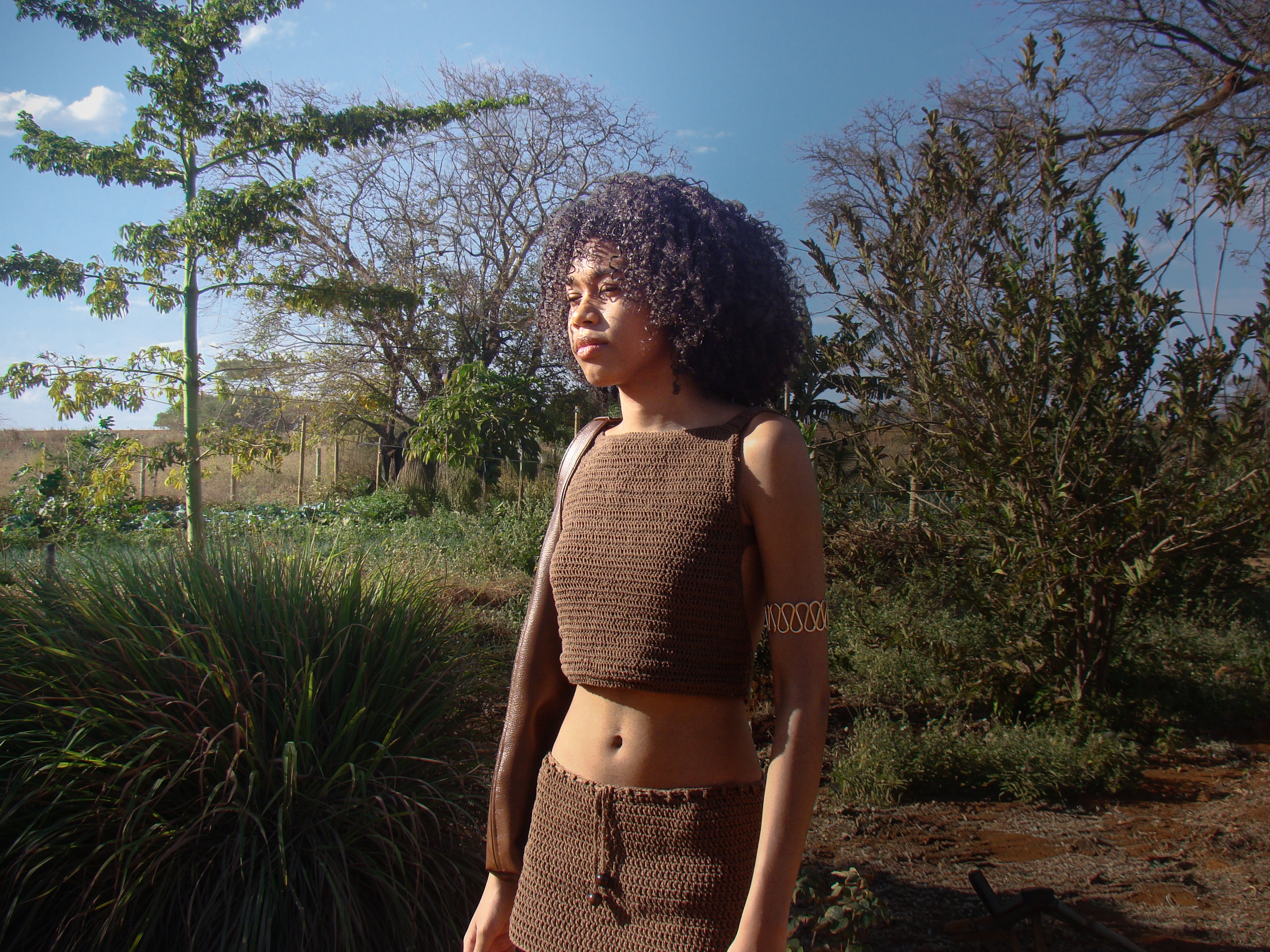 Tecidos que fluem como rios na terra.Roupas que brotam do corpo com leveza ancestral.
